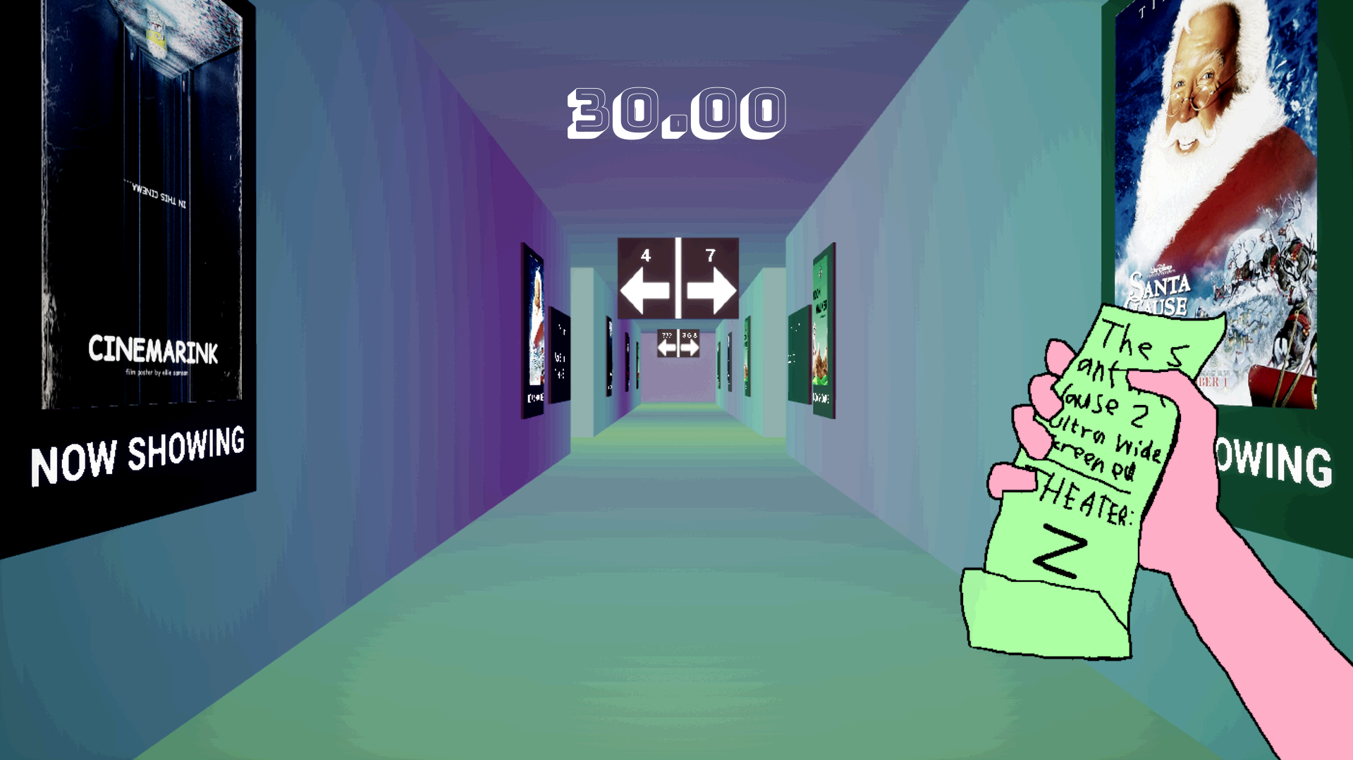 A silly game about finding your seat in a movie theater under a strict time limit.